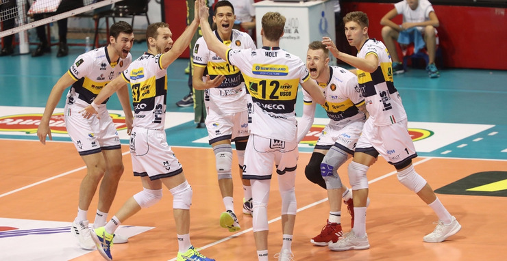 I gialli iniziano la gara con Christenson in regia, Zaytsev è in posto due, le bande sono Bednorz e Urnaut, al centro giocano Holt e Anzani, il libero è Salvatore Rossini.Ravenna risponde con Saitta al palleggio, Rychlicki Kamil opposto, al centro ci sono Russo e Verhess, le bande sono Poglaien e Raffaelli, il libero è Goi.