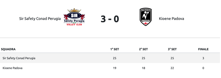 **SIR SAFETY CONAD PERUGIA – KIOENE PADOVA 3-1**