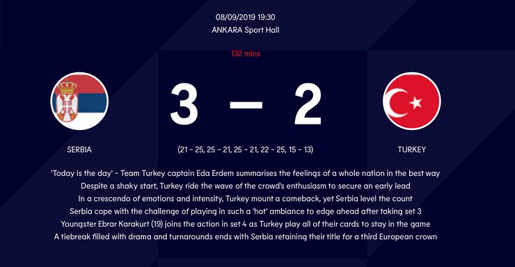 Serbia beat Turkey to retain title at Women's European Volleyball Championship