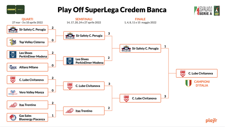 All’Eurosuole Forum il sodalizio biancorosso mette in bacheca il titolo numero 25 della sua storia. I campioni d’Italia vantano ora 7 Scudetti, 2 Champions League, 1 Mondiale per Club, 7 Coppe Italia, 3 Coppe CEV, 1 Challenge Cup e 4 Supercoppe.