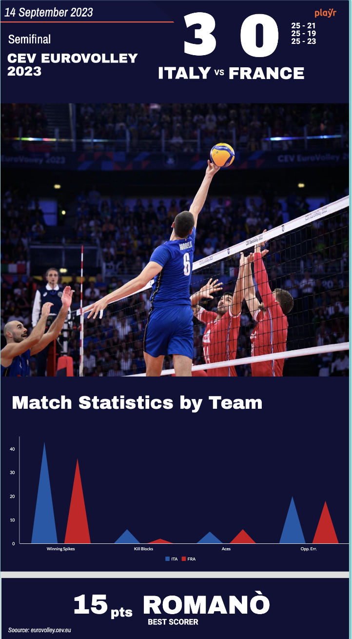 La vittoria in semifinale senza dubbio dimostra la solidità della squadra italiana nella partita contro la Francia, con una performance notevole da parte di alcuni dei suoi giocatori chiave come Romanò e Lavia. La Francia ha lottato, ma non è riuscita a tenere il passo con l'Italia durante la semifinale.