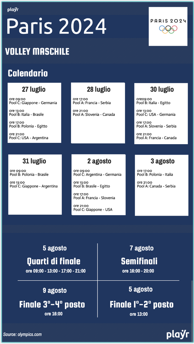PARIGI 2024: il calendario del torneo di pallavolo maschile