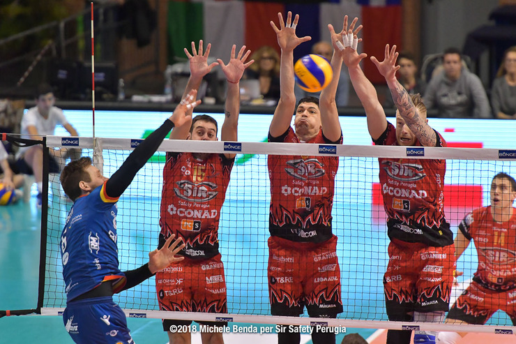 SIR SAFETY CONAD PERUGIA: De Cecco 1, Atanasijevic 18, Podrascanin 9, Anzani 7, Zaytsev 15, Berger 17, Colaci (libero), Della Lunga, Shaw. N.e.: Russell, Ricci, Cesarini (libero), Andric, Siirila. All. Bernardi, vice all Fontana.