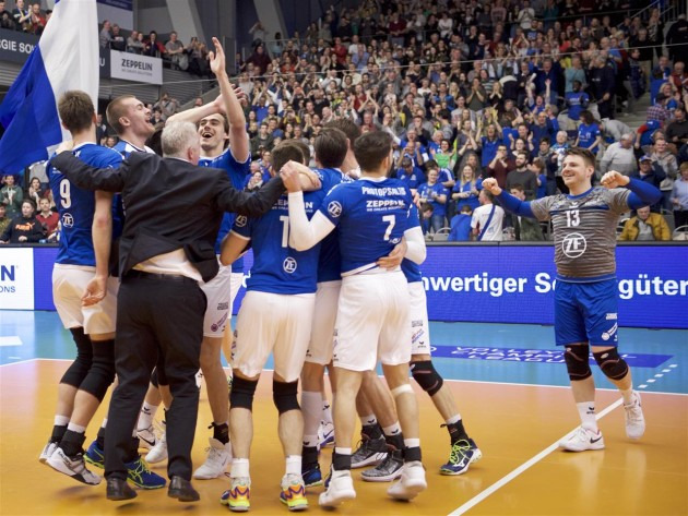 After winning the 1st leg of the Playoffs 12 against fierce rivals from Bundesliga, Berlin Recycling Volleys, by a 3-2, VfB Friedrichshafen had to win two sets in the rematch at home to secure their place in the next round. But no, the „Häfler“ wanted to preserve their invincibility that goes on from the beginning of the season and includes all domestic and international tournaments. So, Friedrichshafen added another set to winning the first two and outplayed BR Volleys for the fifth time this season, partially 25-19, 25-23, 25-22.