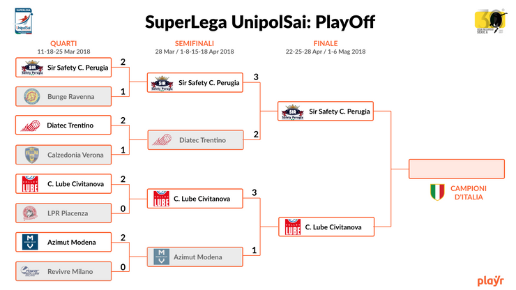 Gara 2 è prevista per il 25 aprile a Civitanova e gara 3 sabato 28 a Perugia.
