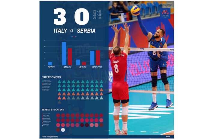 Si chiude con la vittoria 3-0 (25-21, 25-18, 25-16) contro la Serbia il primo weekend di Volleyball Nations League.