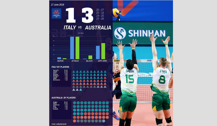 La sconfitta dell'Italia contro l'Australia per 3-1 (27-25, 18-25, 25-19,25- 23) allontana gli azzurri dalla Final Six.