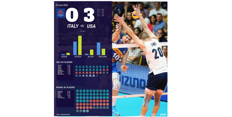 L'Italia perde contro gli USA per 3-0 (25-23, 25-17, 29-27), gli azzurri non riescono a qualificarsi per la Final Six della prima edizione della Volleyball Nations League.