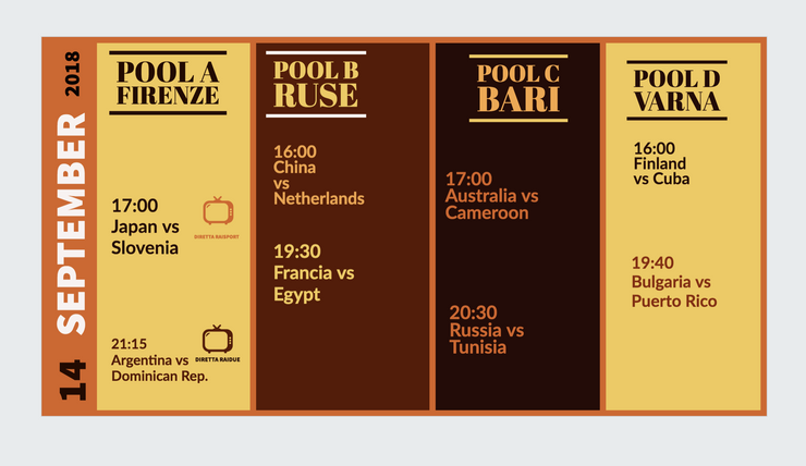 Mondiali Volley 2018: il programma del 14 settembre