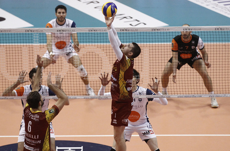 Nella foto, Tsimafei Zhukouski al palleggio durante l’ultimo match contro Siena (foto Lega Volley)