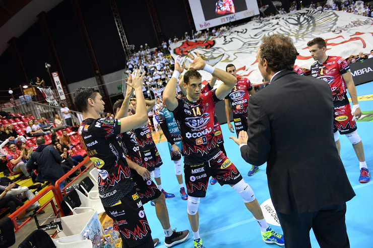 SIR SAFETY CONAD PERUGIA: De Cecco-Atanasijevic, Podrascanin-Ricci, Leon-Lanza, Piccinelli libero. All. Bernardi.