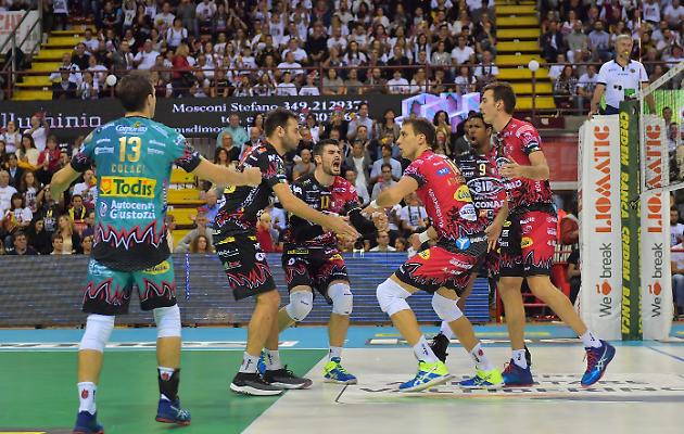 SESTETTI – Formazione tipo per Bernardi, che si affida a De Cecco-Atanasijevic diagonale di posto due, Ricci-Podrascanin centrali, Lanza-Leon a schiacciare e ricevere e Colaci a comandare la seconda linea. Velasco risponde con Christenson in regia e Zaytsev opposto, Anzani ed Holt al centro, Urnaut e Kaliberda in banda e Rossini libero.