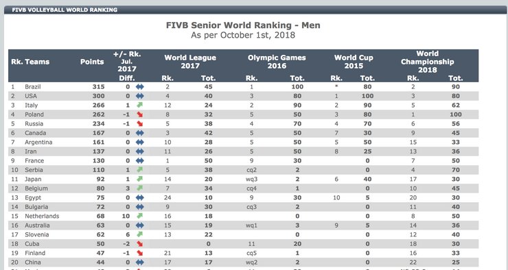 Fonte: [http://www.fivb.org/en/volleyball/VB_Ranking_M_2018-10.asp](http://www.fivb.org/en/volleyball/VB_Ranking_M_2018-10.asp)