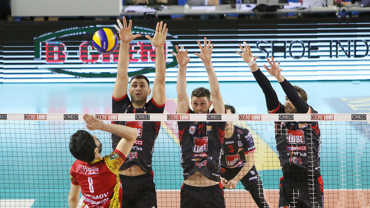CUCINE LUBE CIVITANOVA: Sokolov 4, Kovar 8, D'Hulst 1, Marchisio (L), Massari 12, Stankovic 1, Sander 2, Diamantini 11, Leal n.e., Cantagalli 1, Cester 9, Simon n.e., Bruno 1, Balaso (L) n.e.. All. De Giorgi.