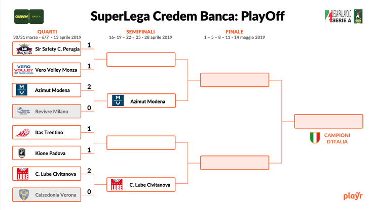 Si decideranno il 13 aprile le sfidanti di Perugia e Civitanova.