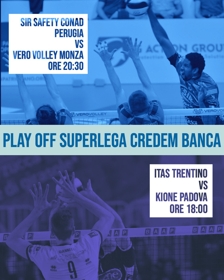 Si torna in campo per i play-off di Superlega. Si inizia alle 18:00 con Itas Trentino vs Kione Padova diretta RAI Sport e alle 20:30 Vero Volley Monza sfiderà la Sir a Perugia.