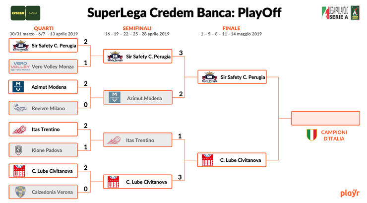1ª Giornata Finale - Mercoledí 1 Maggio 2019 Ore 20:30 al PalaBarton il fischio di inizio di Sir Safety Conad Perugia contro Cucine Lube Civitanova.
