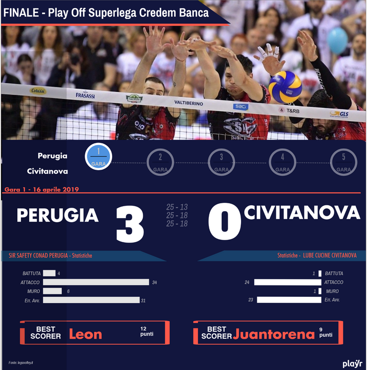 In gara 1 la Sir non aveva lasciato spazio a una Civitanova poco concentrata.