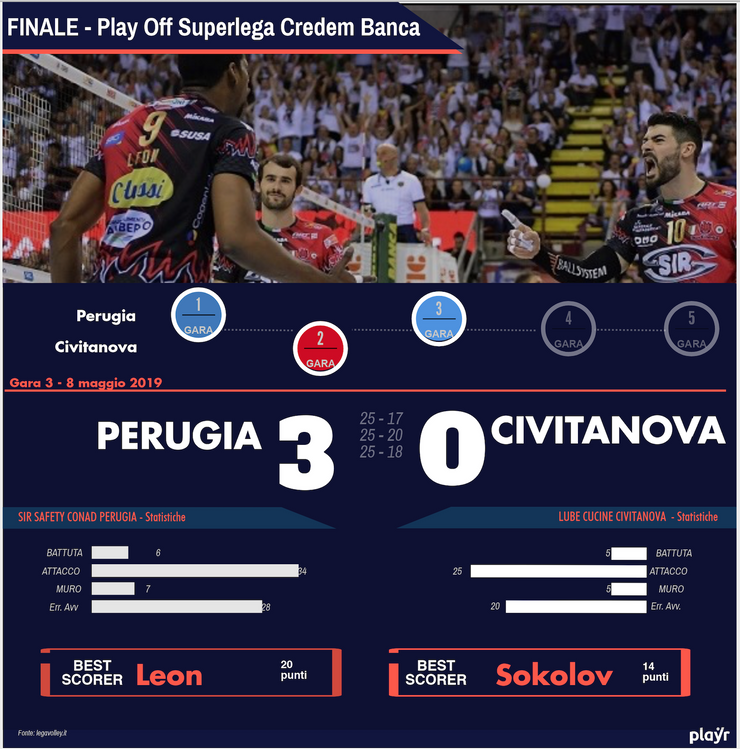#SuperLega: Perugia si riprende la posizione di vantaggio