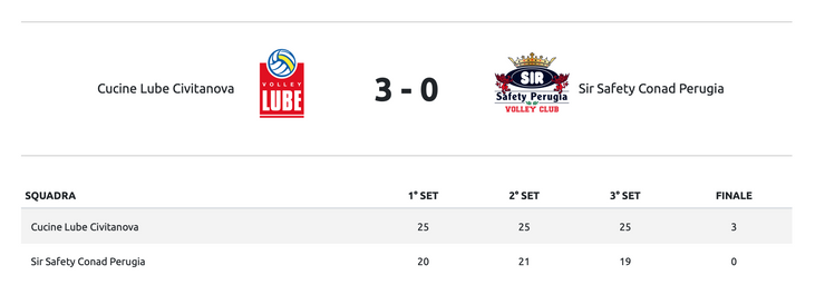 Parziali: 25-20, 25-21, 25-19