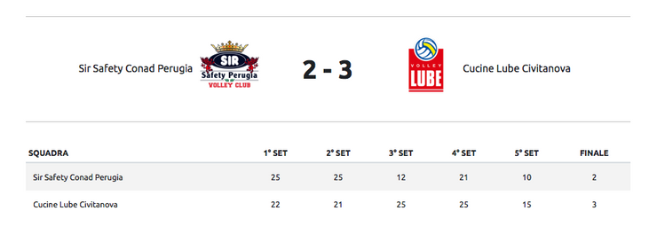 Fonte: [https://www.sirsafetyperugia.it/new/perugia-cade-al-tie-break-lo-scudetto-lo-prende-civitanova](https://www.sirsafetyperugia.it/new/perugia-cade-al-tie-break-lo-scudetto-lo-prende-civitanova)