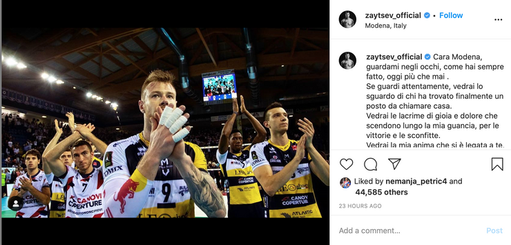 Ieri è arrivata la conferma, anche Ivan Zaytsev lascia Modena. I capito della nazionale Italiana sarà in prestito al Kuzbass Kemerovo, in Siberia, per un anno dopo non aver accettato la riduzione dell'ingaggio del 50%. Se non ci saranno cambiamenti, tornerà in Emilia alla fine della stagione 2020-21.