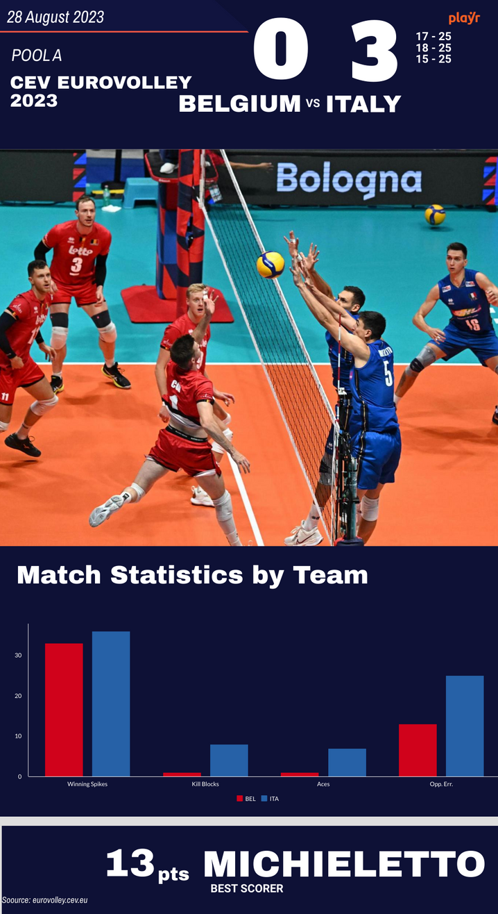 Fonte: [https://www.federvolley.it/news/europei-maschili-buona-la-prima-l-italia-batte-il-belgio-bologna](https://www.federvolley.it/news/europei-maschili-buona-la-prima-l-italia-batte-il-belgio-bologna)