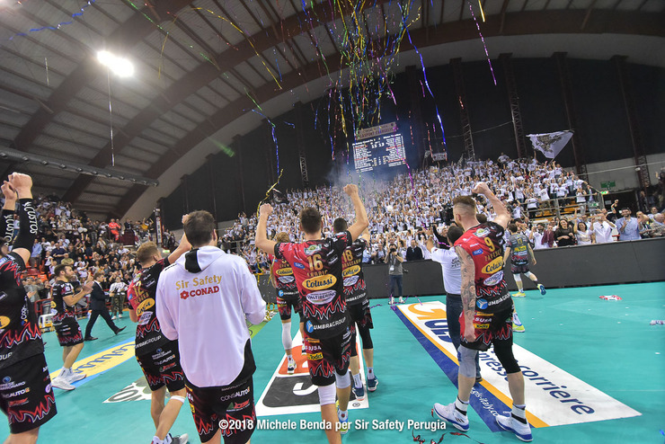 Il cuore, il grande cuore della Sir Safety Conad Perugia regala ai quattromila saliti a Pian di Massiano una serata da ricordare, di quelle che ti restano dentro per un po’. L’attacco vincente di Ivan Zaytsev chiude 15-13 il tie break di una sfida meravigliosa per pathos ed adrenalina e poi è festa grande, festa vera, festa genuina. Quella dei Sirmaniaci e di tutto il meraviglioso pubblico bianconero che non smette di cantare e di abbracciare i propri beniamini. La pallavolo ha il grande dono di far battere il cuore, di far salire le pulsazioni, di far innamorare la gente. Bello davvero!
