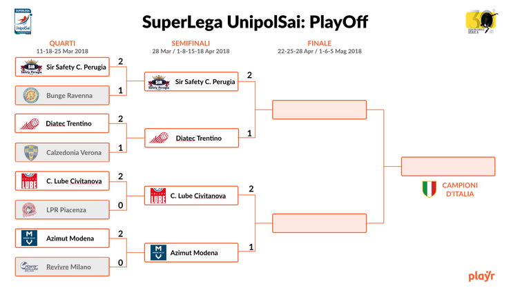 Si preannuncia una Gara 4 all'ultimo respito. Domenica 15 alle 18:00, al PalaPanini ci sarà Modena vs Civitanova e alla BLM Group Arena Trento vs Perugia.
