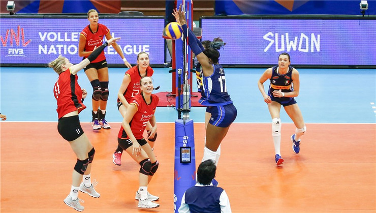 Suwon, South Korea, May 23, 2018 - An energetic all-round performance from Miryam Fatime Sylla inspired Italy to their first triumph of the FIVB Volleyball Nations League with a 3-0 (25-22, 25-18, 25-20) victory over Germany on Wednesday.