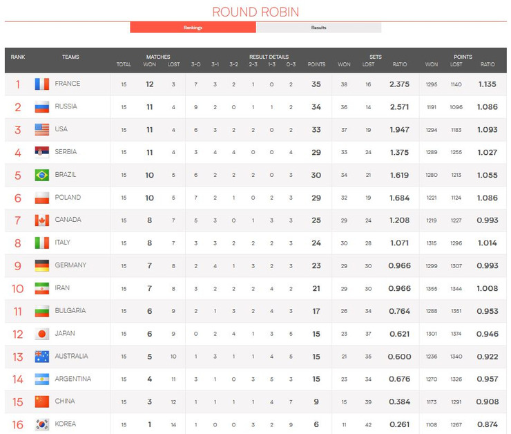 France finished first in the standings but as hosts of the Finals in Lille, their place was already secured. The USA were next to book their spot in the Finals, winning an all-important point on Friday night against France. They were soon joined by Russia, who beat Italy in straight sets to guarantee their place, with the result also securing the spot of reigning Olympic champions Brazil.