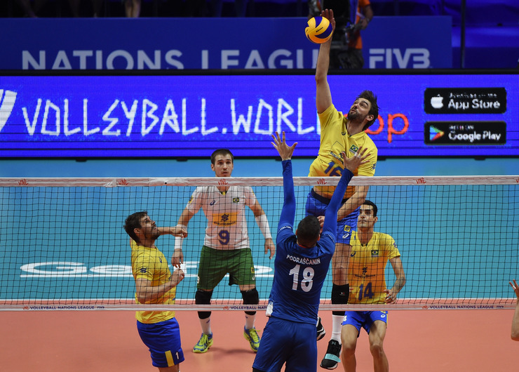 Lille, France, July 5, 2018 - Lucas Saatkamp produced a monumental display as Brazil booked their place in the semi-finals of the FIVB men's Nations League with a crucial 3-0 victory (25-16, 28-26, 25-19) over Serbia in Lille.