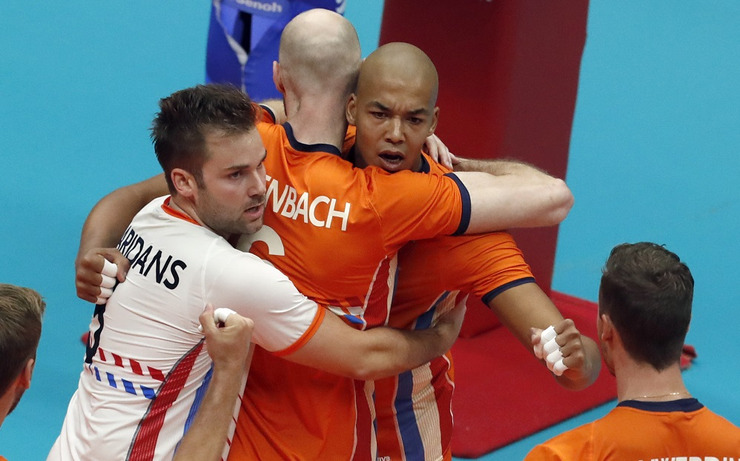 Despite the end of the third set, the Netherlands started on the best way possible the next one and took 8-point advantage by 17-9. Until the end Gido Vermeulen’s players did a great job in all aspects of the game and won the match after 25-13.