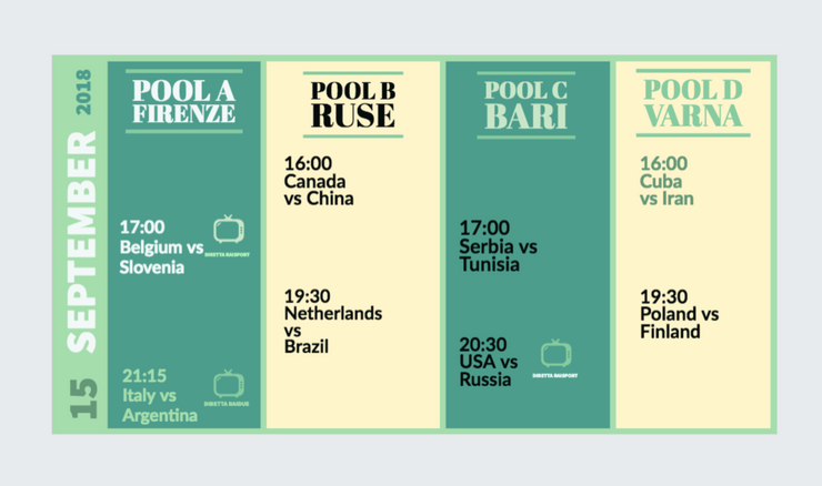 Mondiali Volley 2018: il programma del 15 settembre