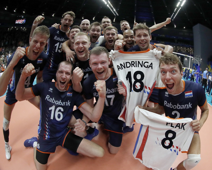Ruse, Bulgaria, September 15, 2018 - The Netherlands shocked with the biggest surprise in Pool B at the 2018 FIVB World Championship! Gido Vermeulen’s players achieved an amazing win against the current Olympic champion Brazil 3-1 (21-25, 25-20, 25-20, 25-21) in one of the most interesting matches in “Arena Monbat”.