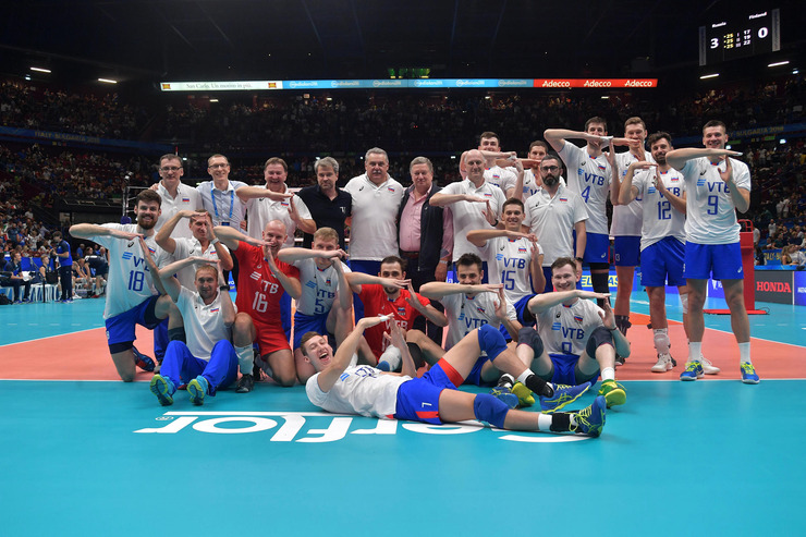 Russia offered their best performance in the second set with powerful serves and repeated kill blocks (13 in the match), that led to a landslide 8-2 lead at the first mandatory break. Coach Sammelvuo gave to his subs the opportunity to take part in the World Championship. Their young libero Niklas Breilin, only 19 years old, showed much character to close the gap at 15-10. However, Russia were unstoppable, even with powerful Mikhaylov sitting on the bench, who was well replaced by Victor Poletaev (seven points in the set) and fixed the win at 25-19.