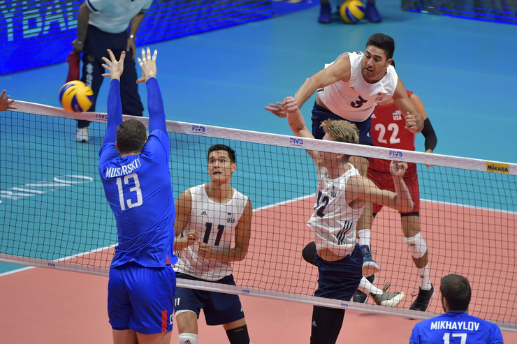 The USA outside hitters passed on the baton as Taylor Sander dominated the first two sets and Aaron Russell closed the match.