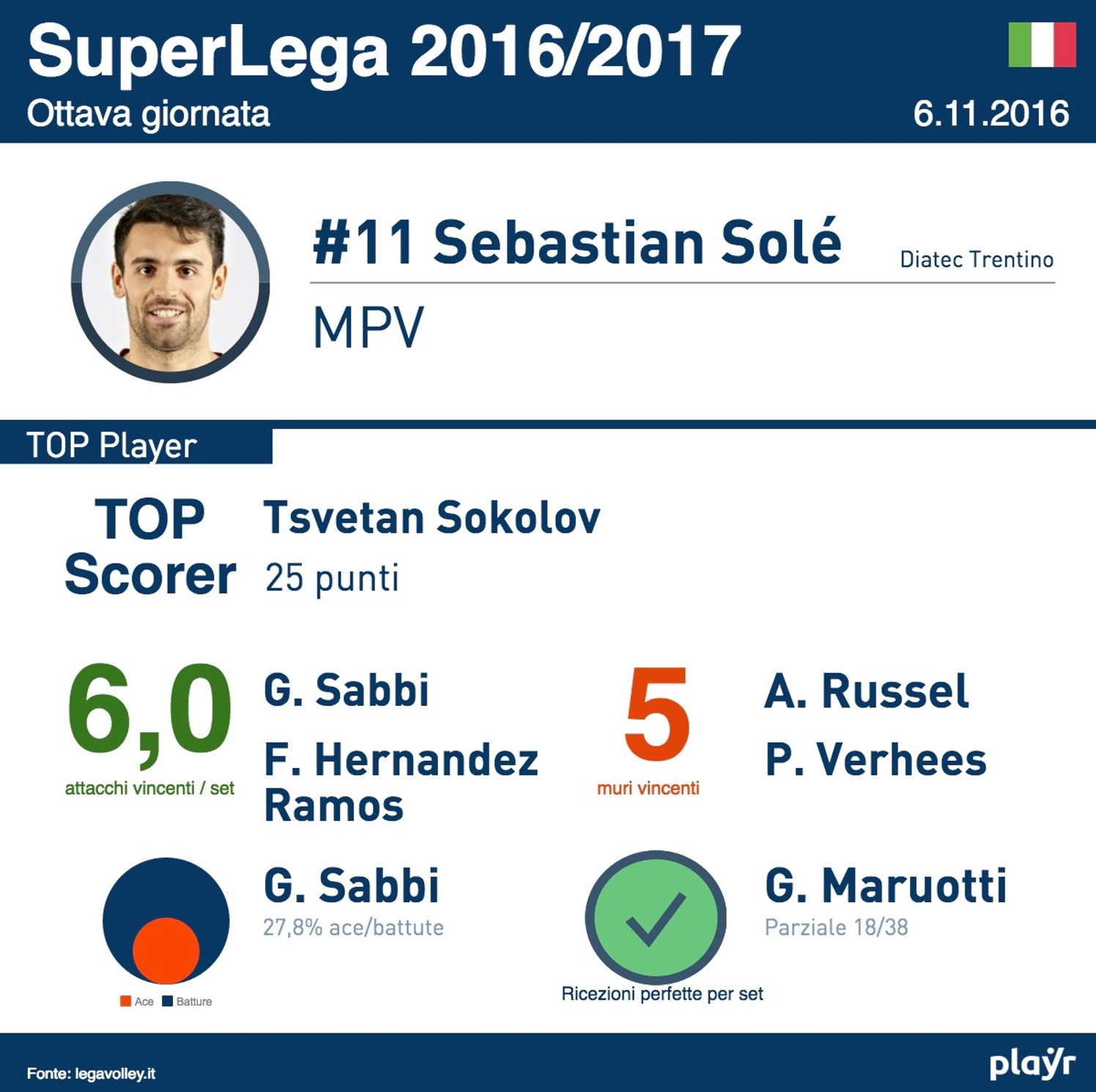I top individuali dell'ottava giornata che si chiude con Modena capolista e la rimonta di Civitanova contro Perugia.