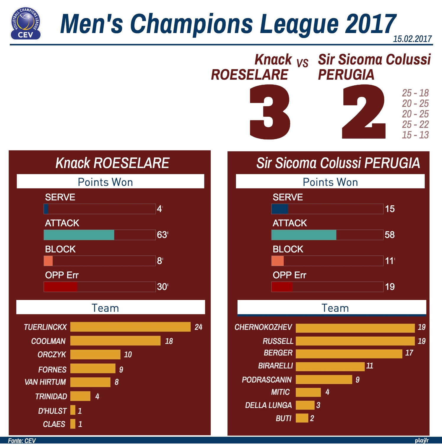 Perugia perde solo al quinto set.