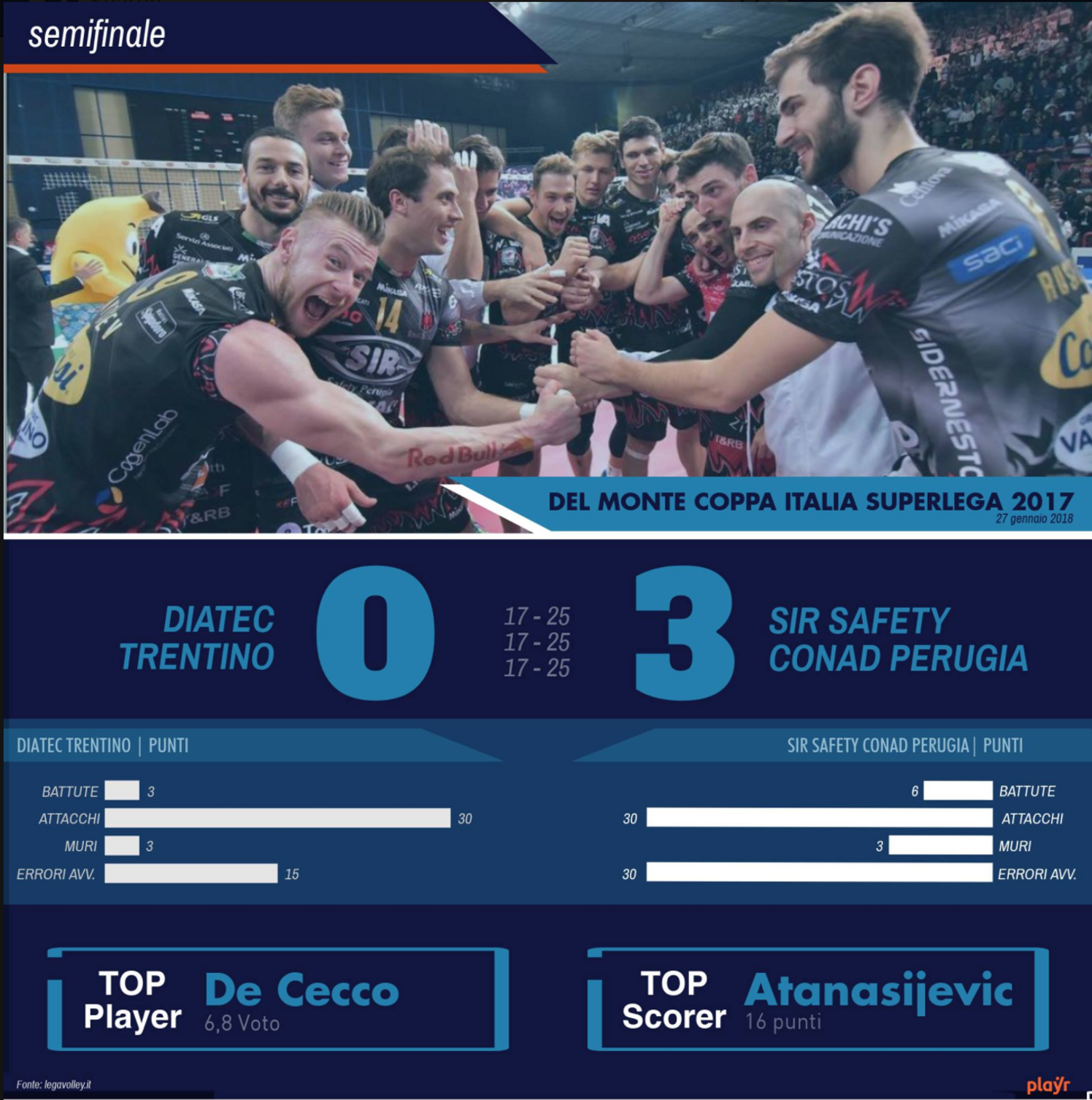 Diatec Trentino-Sir Safety Conad Perugia 0-3 (17-25, 17-25, 17-25)