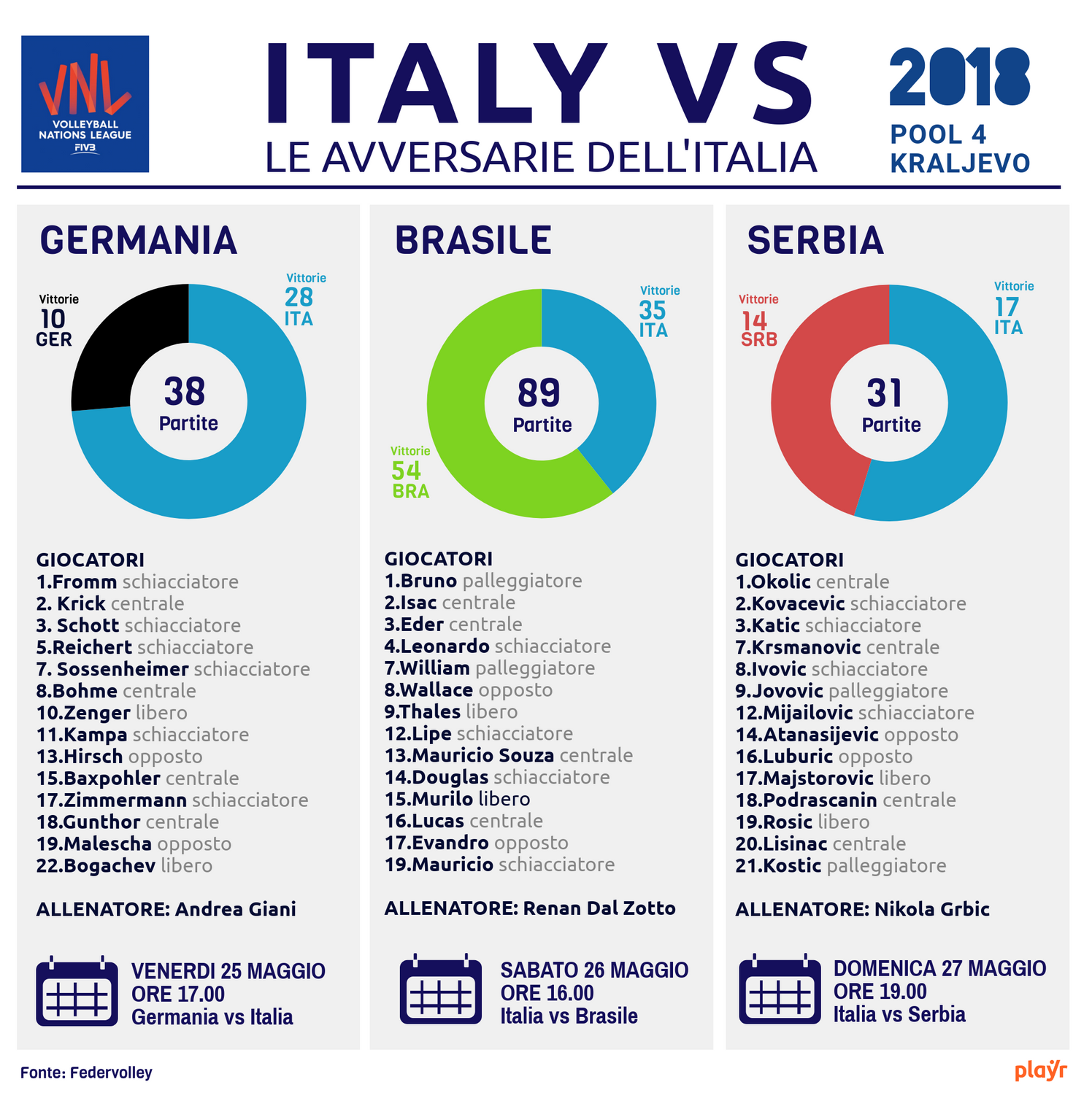 Domani inizia la Nations League, l'Italia ritrova Zaytsev e Juantorena. In questo primo weekend, la Nazionale impegnata a Kraljevo in Serbia, affronterà nell’ordine, Germania, Brasile e i padroni di casa della Serbia.