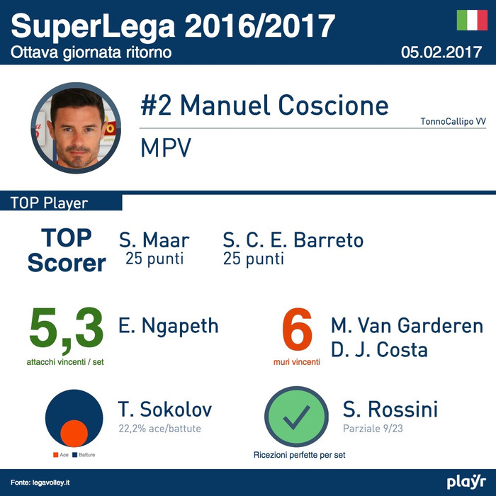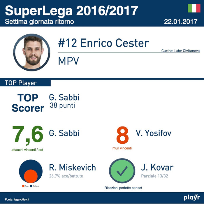 #SuperLega: @giuliosabbi 🔝 con 38 punti e 61% in attacco.