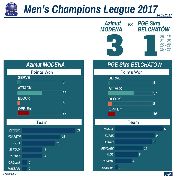 Modena ancora super, vince anche contro il Belchatòw e conquista il primo posto 💪
