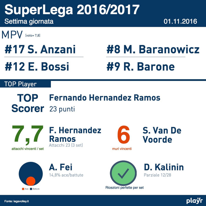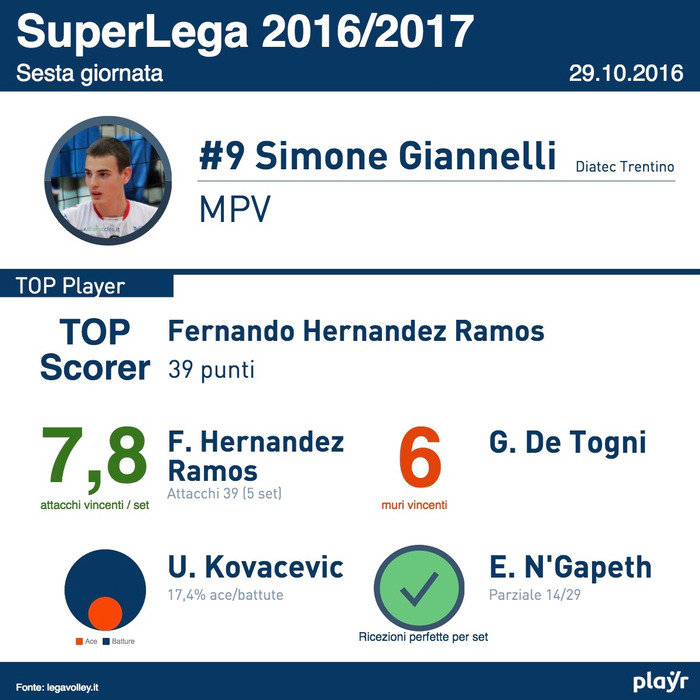 Settimana giornata di Superlega: Hernandez Ramos ancora Top Scorer.